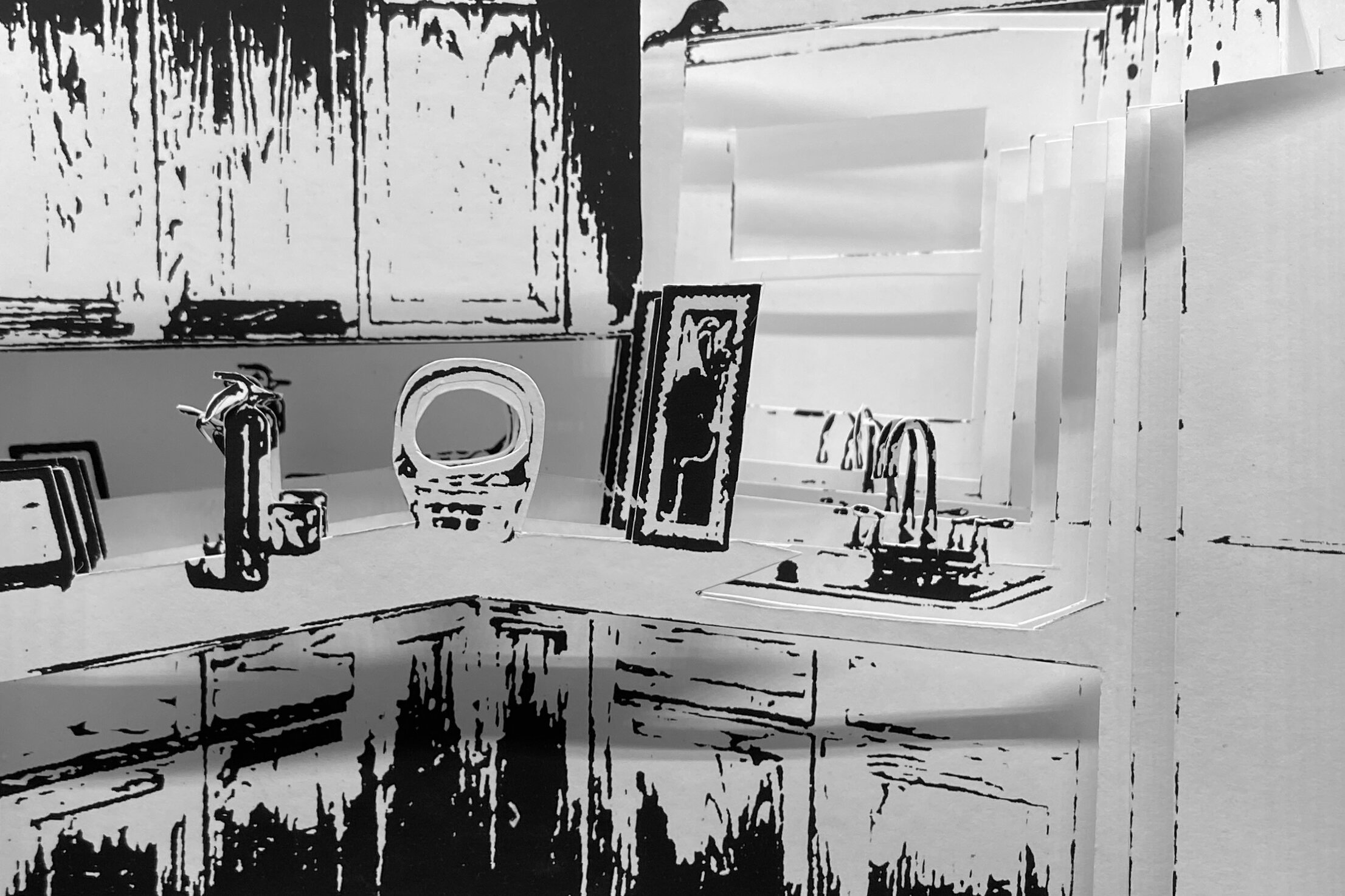 I embrace Where I’ve Been. With ongoing works, I recreate the familiar. I use documentation to record daily life and retain memories. I spend time working towards concepts that acknowledge the mundane and capture points in time. I create models of the places I have been, places that hold significance in my life and development. I embrace the home, where life happens. People remember where they come from, become encapsulated by memories both good and bad. I am trying to hold on to things I have had to let go when I had no control. Through the use of photography and paper manipulation, I want to set the reminders to strive to do better and make a life that carries a different weight. They are a callout to myself, to the work that I do. I am here to direct my future and alter my timeline. I will ensure that I follow a different path and will not end up back where I started.